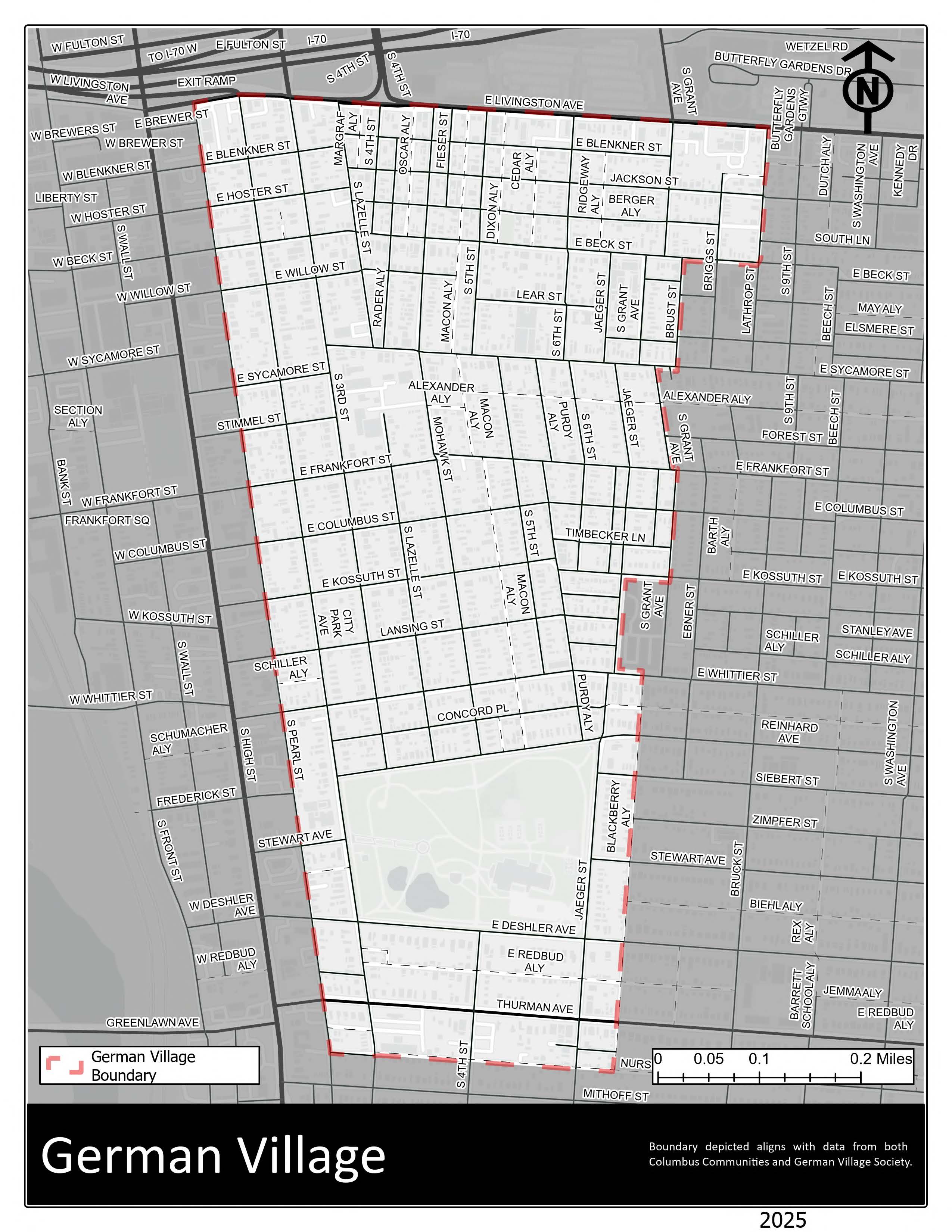 “Currently, the City of Columbus and its officials, agencies, departments, agents, and contractors are enjoined from causing, allowing, permitting, assisting, promoting, or accommodating the demolition or alteration of any sidewalks or curbs within the German Village Historic District, whether by an affirmative act or an omission, unless and until a certificate of appropriateness had been obtained from the German Village Commission for the specific demolition or alteration. This prohibition results from a preliminary injunction issued in the case German Village Society, et al. v. City of Columbus, et al. (Franklin County Common Pleas Case No. 25CV7368)."
